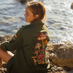 A late 1980's Czech army M85 field jacket embroidered with love in Ibiza